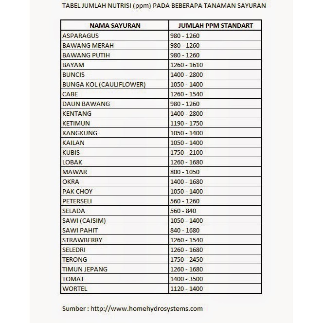 Khusus untuk ph usahakan dijaga agar sesuai dengan nilai yang tertera di tabel dari masa penyemaian hingga panen.
