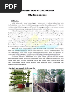 Dasar hidroponik pdf. Cara ini sangat populer karena cara membuatnya yang sangat mudah. Adapun menggunakan cara ini merupakan cara yang sangat populer. Hydroponics berasal dari 2 kata yaitu hydro air dan ponos daya wikipedia yunani. Dalam sejarah perkembangan hidroponik penelitian penelitian pertama tentang hidroponik tercatat menggunakan sistem kultur air tanpa adanya substrat atau media tanam woodward 1699.